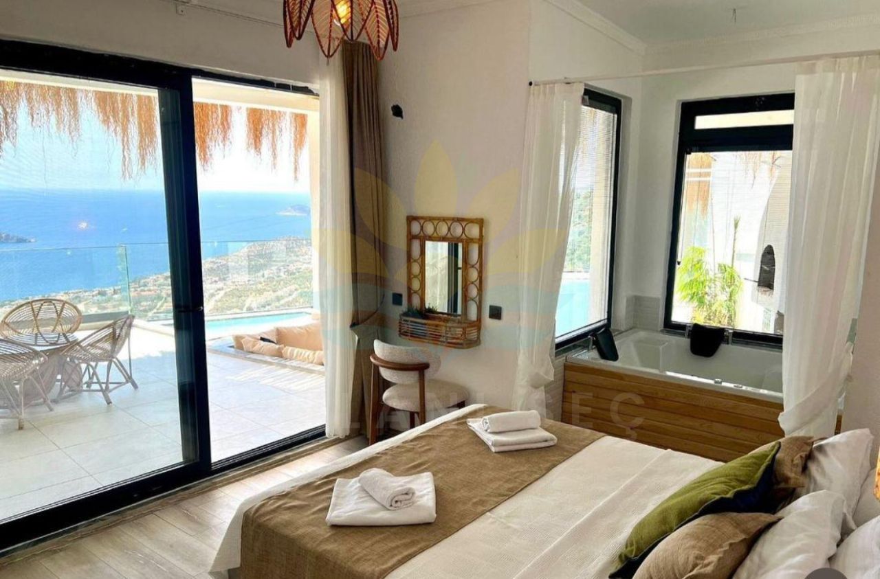 Kalkan’ın eşsiz manzarasına karşı konumlanan bu villa, hem huzurlu bir tatil hem de konforlu bir yaşam alanı arayanlar için ideal bir seçenek. Akdeniz’in o kendine özgü sakinliğini ve doğallığını hissedebileceğiniz bu özel villa, size kalabalıktan uzak, tamamen size ait bir alan sunar.
